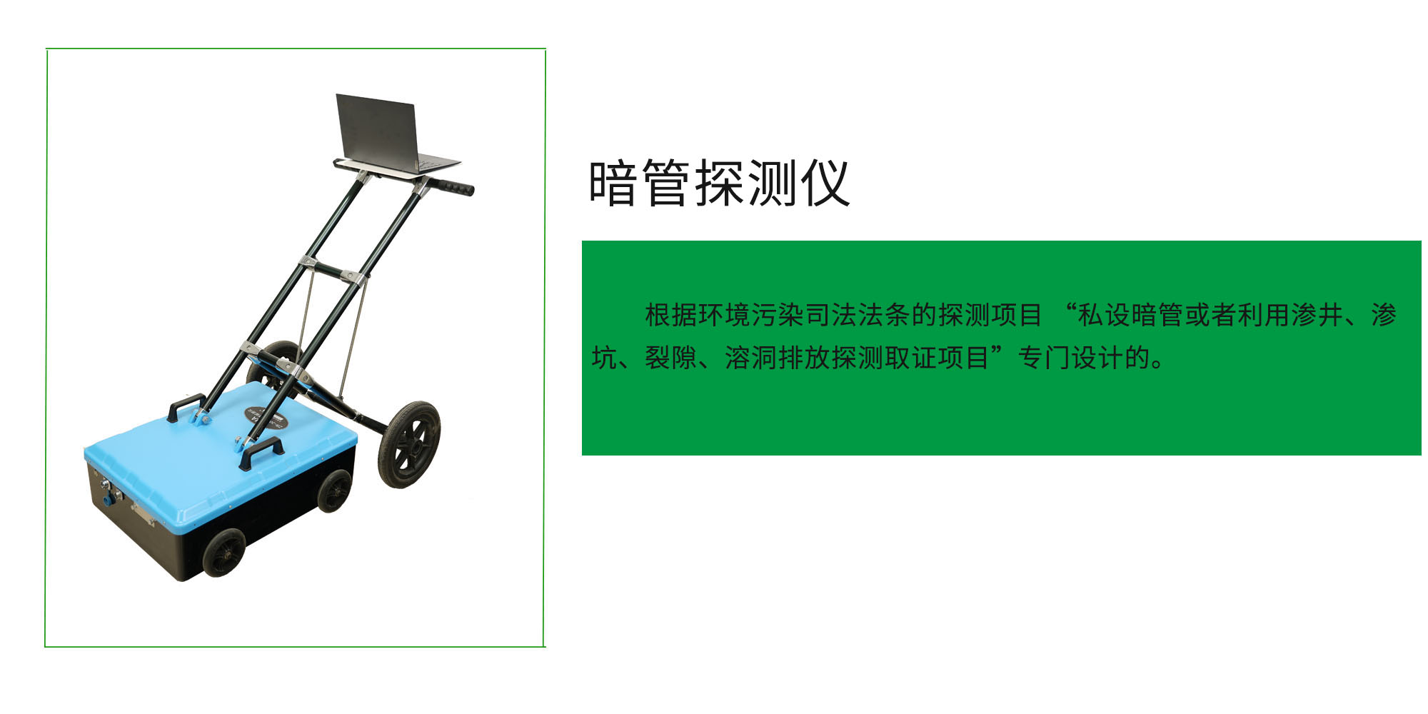 非侵入情況下對(duì)污染源企業(yè)偷排暗管、暗井、滲井(旱井)、滲坑(坑塘)、排污管裂隙等管道的預(yù)定位,偷排口的精定位,偷排管道路由的定位,以及排放暗管、暗井、滲井(旱井)、滲坑(坑塘)、排污管裂隙等介質(zhì)的取證。